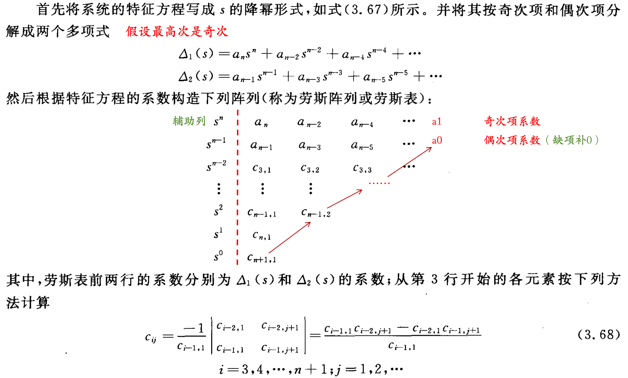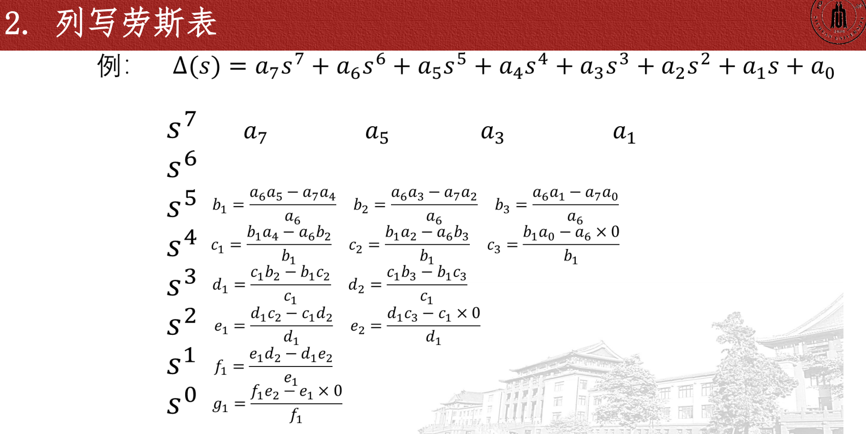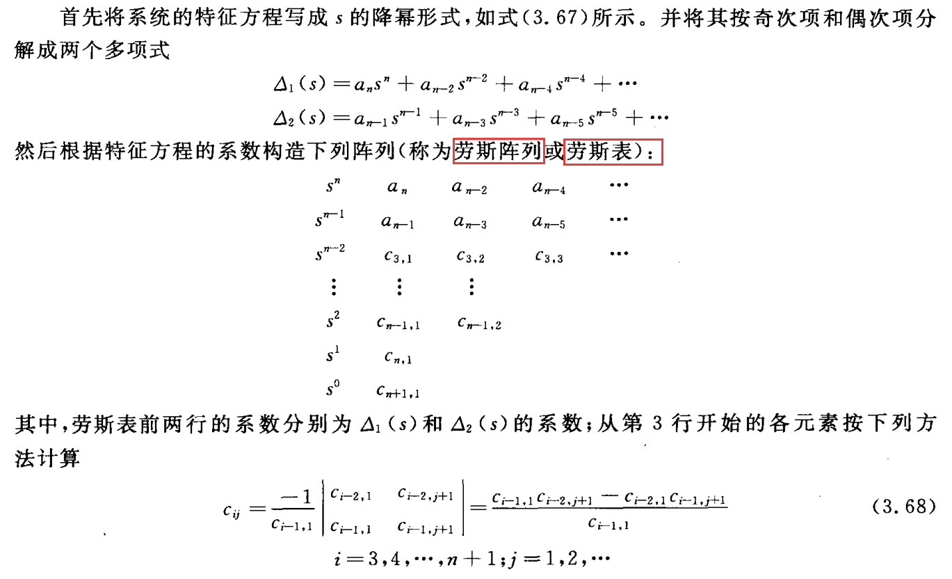 劳斯判据有许多种表示形式,这里仅介绍其常用的阵列形式。