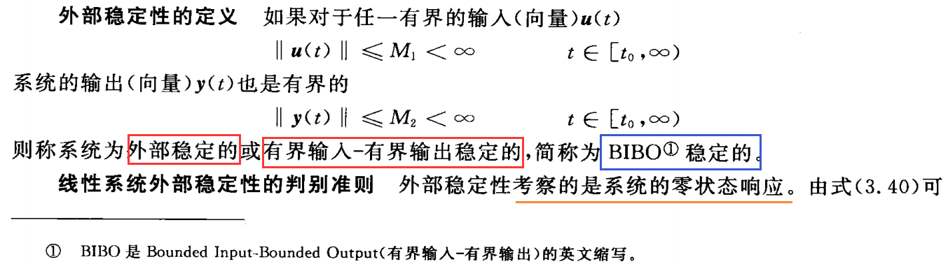 这时所考察的系统运动,实际上是它的零状态响应(分量),故外部稳定性又称为零状态响应稳定性。