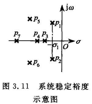 这里介绍的是:用极点与虚轴的距离来定义系统的相对稳定性,并采用系统极点与虚轴的最小距离σ来表示系统的稳定裕度。