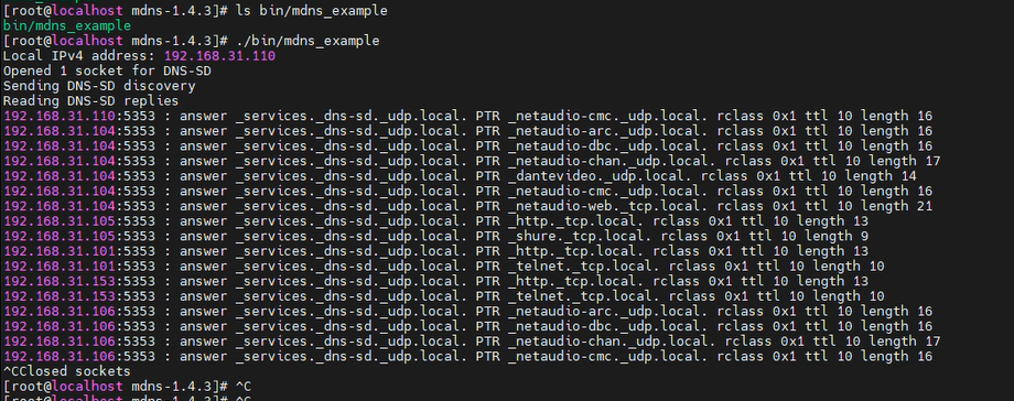 bin目录下会生成示例文件mdns_example,运行该文件即可看到效果: