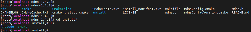 如果执行成功,mjansson/mdns源码目录的install/include目录下会生成头文件 :