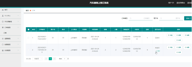 管理员可以对汽车票信息进行添加修改删除操作。界面如下图所示: