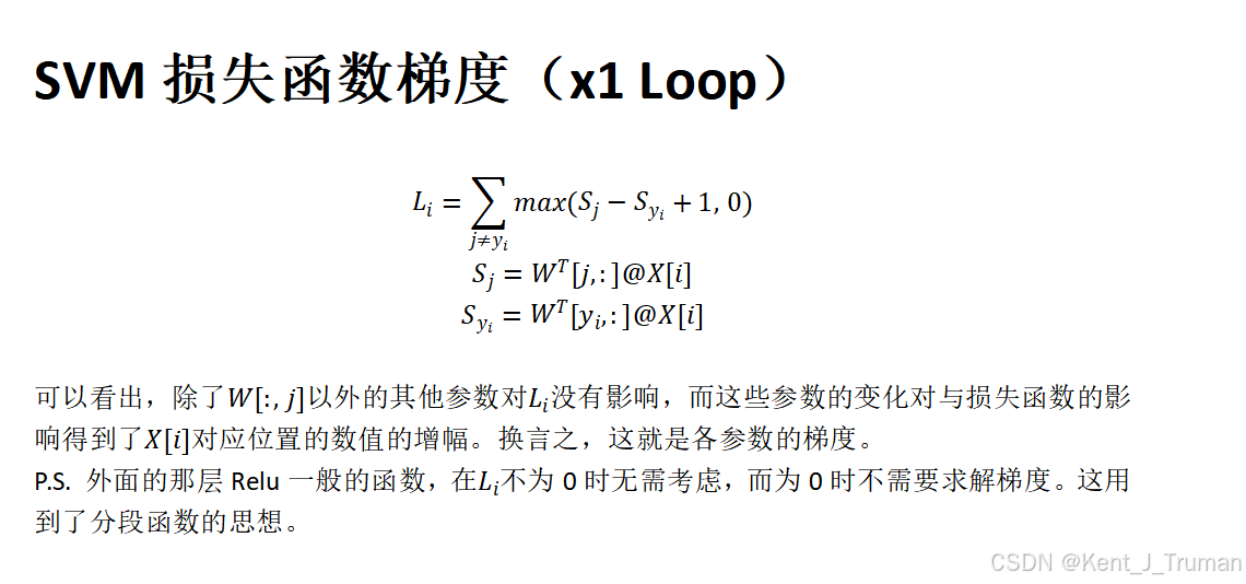 dW[:, j] += X[i]dW[:, y[i]] -= X[i]#注意这里,求的是平均梯度。因为之前求过平均损失。dW /= num_traindW += 2 * reg * W