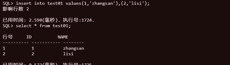 1 SYSDBA已用时间: 4.799(毫秒). 执行号:1401.