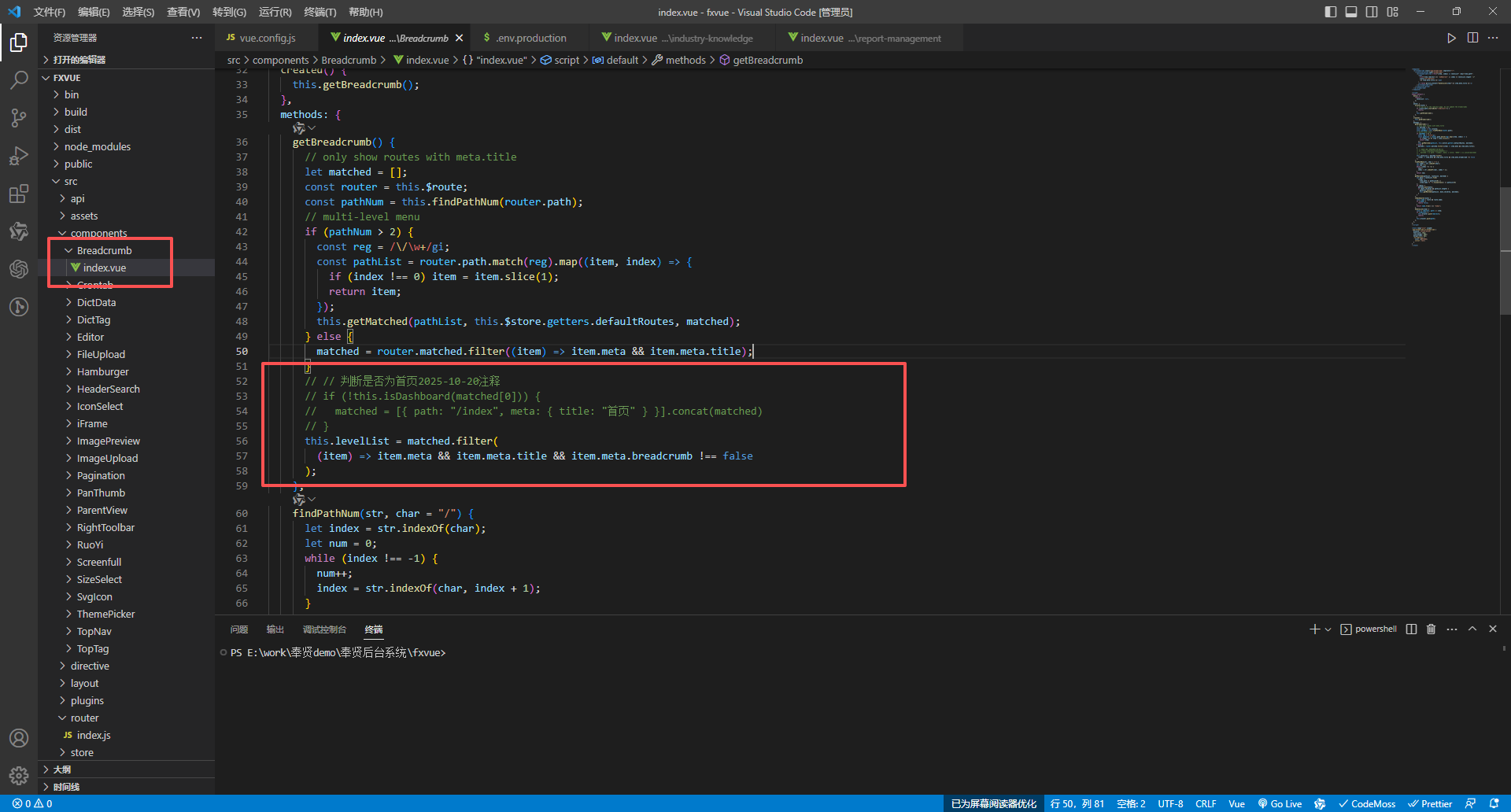 3.面包屑不再展示首页,Breadcrubm/index.vue,注释掉跳转首页的逻辑