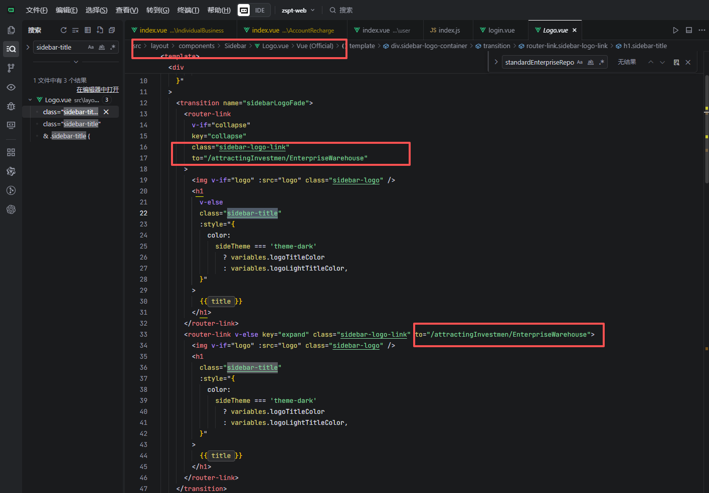 5.点击logo和图标要改为跳转的目标页,而不是首页