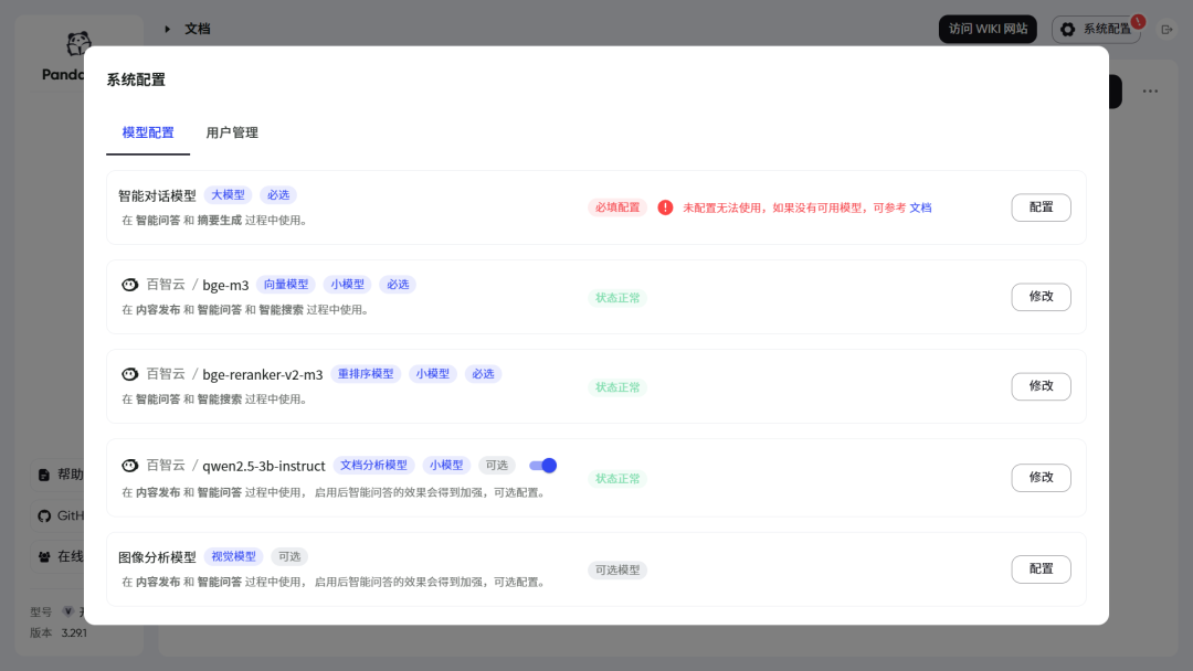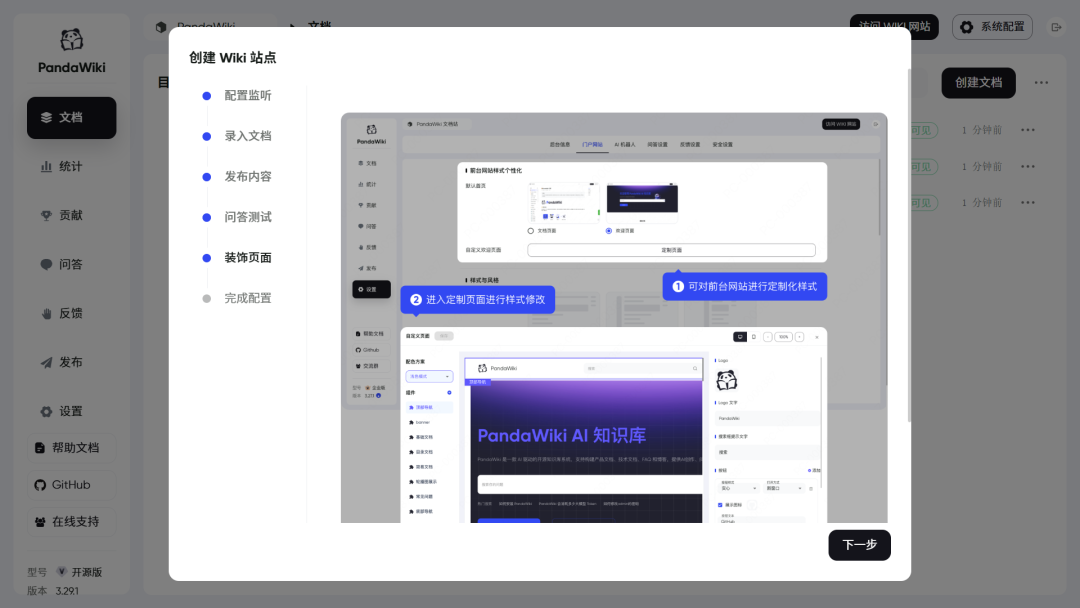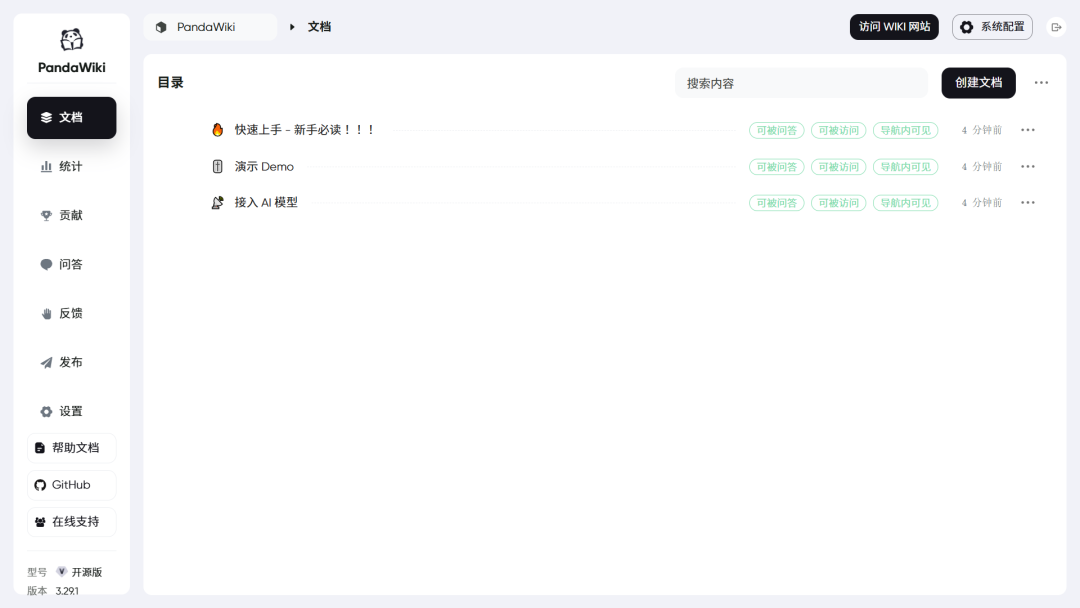 详见:https://pandawiki.docs.baizhi.cloud/node/01971616-811c-70e1-82d9-706a202b8498