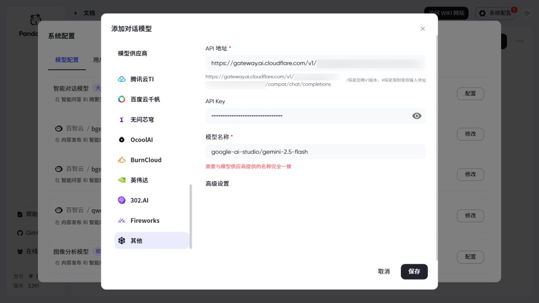 https://gateway.ai.cloudflare.com/v1/{account_id}/{gateway_id}/compat/# 模型名称格式: