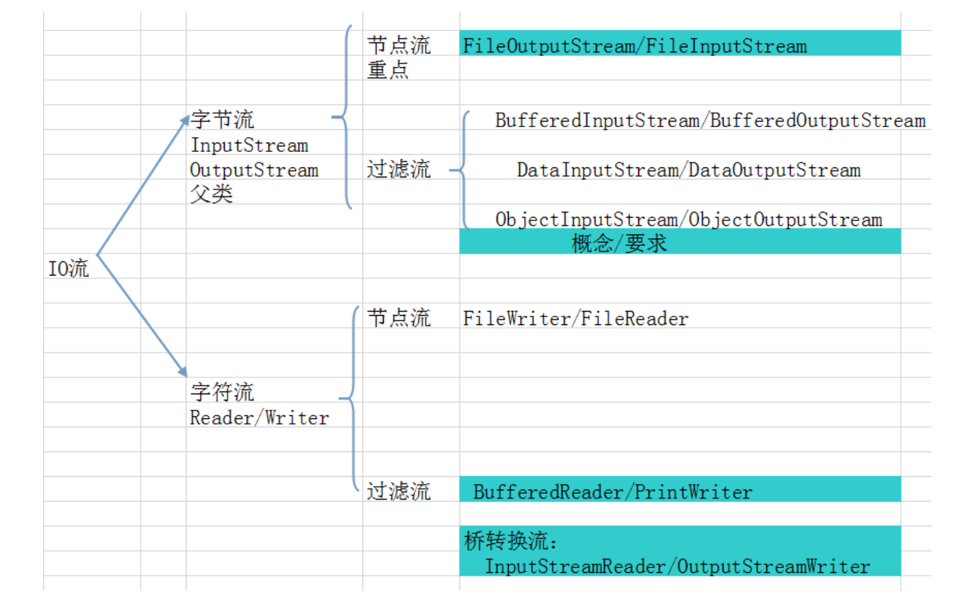 (3) 按照功能分: a. 节点流:只具有基本的读写功能。 b. 过滤流:在节点流的基础上,增强读写功能。