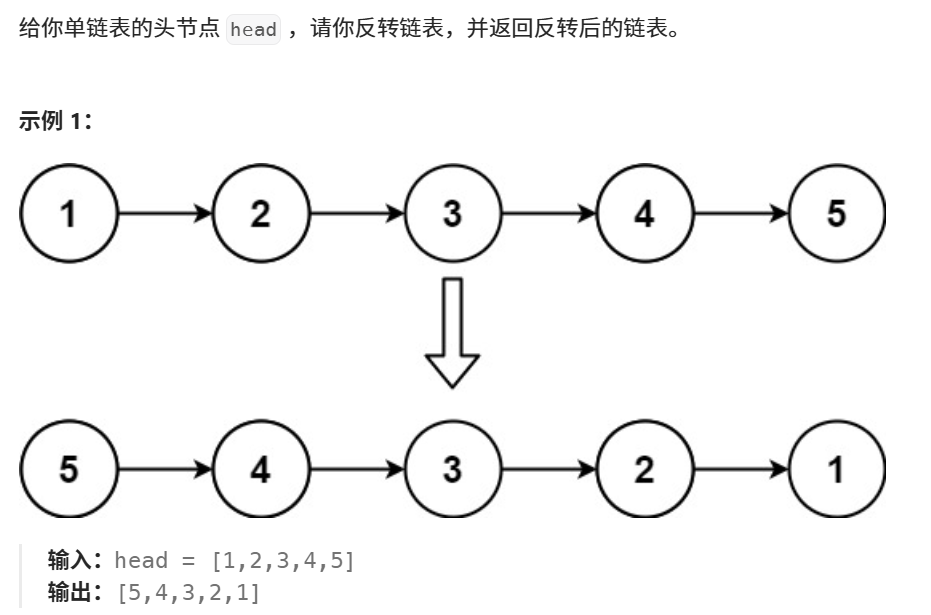 class Solution {public ListNode reverseList(ListNode head) {if (head == null || head.next == null) return head;// 遍历,头插到新链表ListNode newHead = new ListNode();while (head != null) {ListNode next = head.next;head.next = newHead.next;newHead.next = head;head = next;}return newHead.next;}