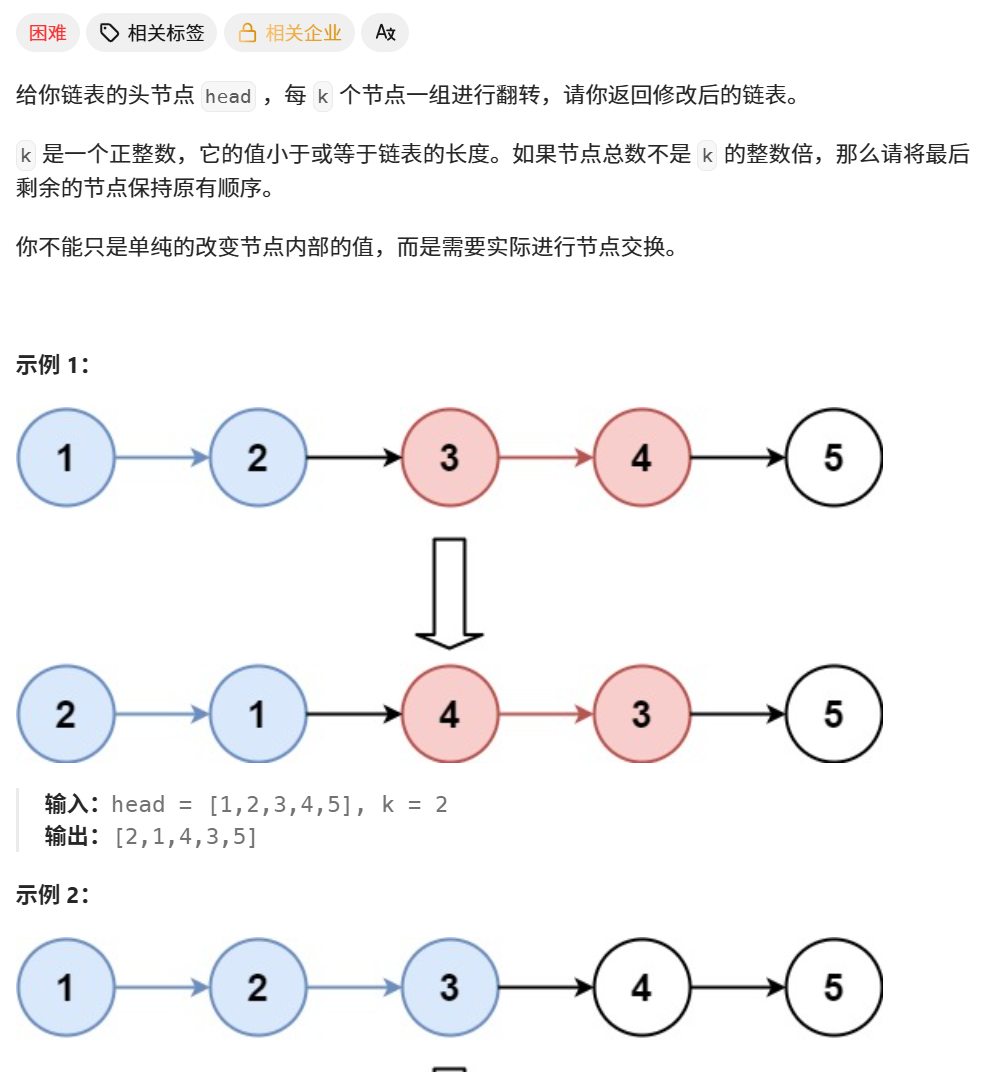 题目:25. K 个一组翻转链表 - 力扣(LeetCode)