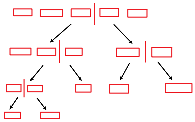 法三,分治(递归):类似于归并排序,把数字元素替换为链表元素,然后我们合并的不是左右子数组,而是左右链表。因为有 k 个节点(链表),所以树高 logk,每层最多需要遍历 kn 个节点,时间复杂度:O(n*klogk)。空间复杂度,递归深度:O(logk)。
