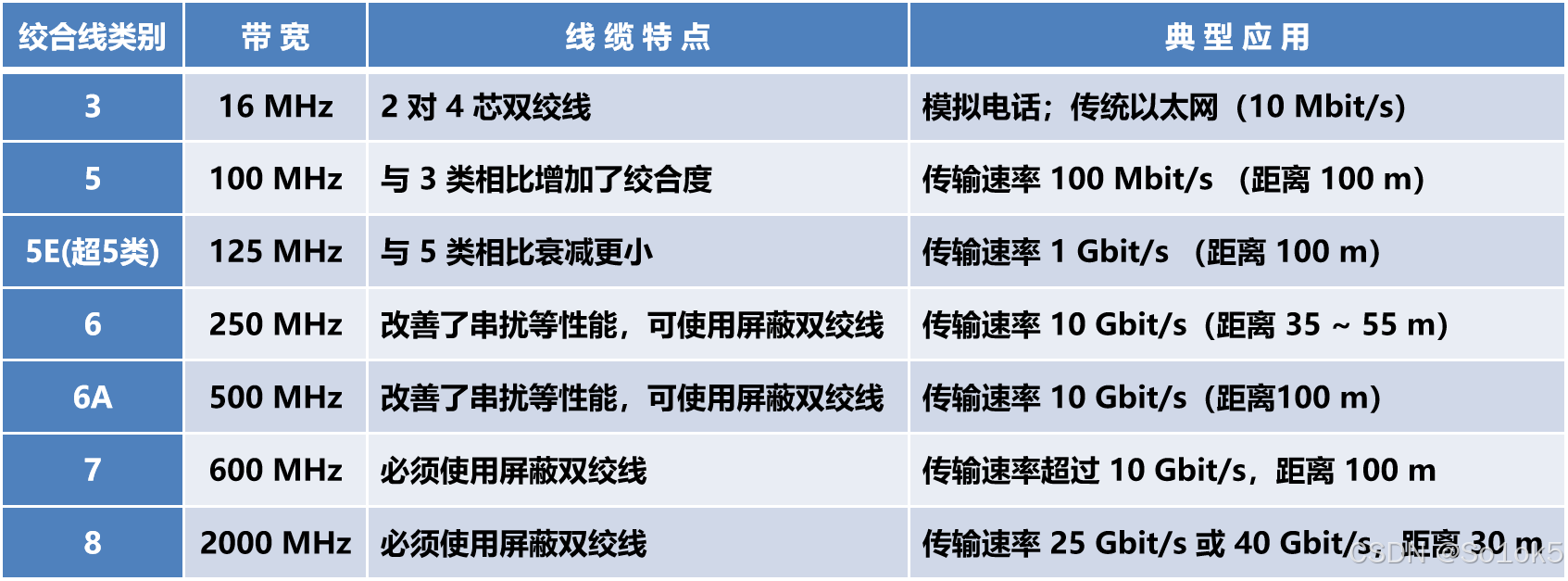 - 传输距离:取决于数据率和用户线的线径,以及用户线上的信噪比。