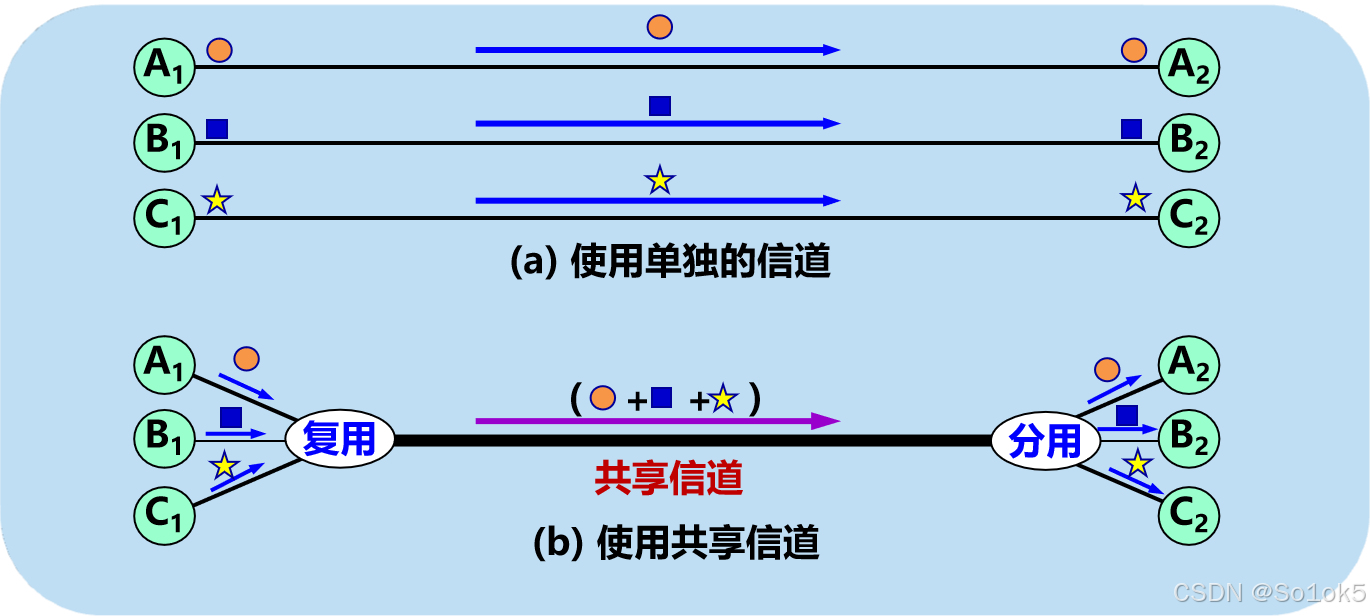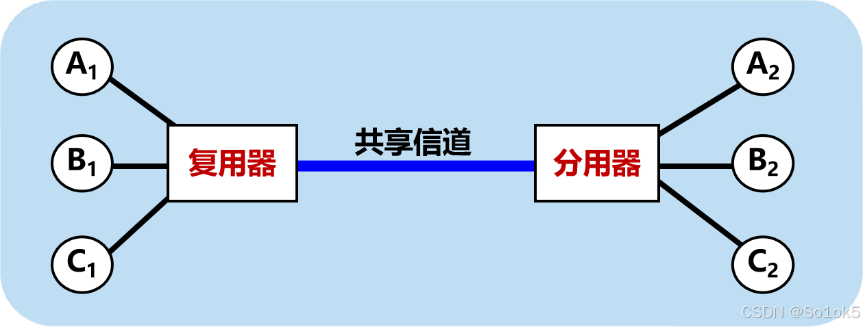 - 分用器(Demultiplexer):将共享信道上的信号分离到各个单独的信道上。