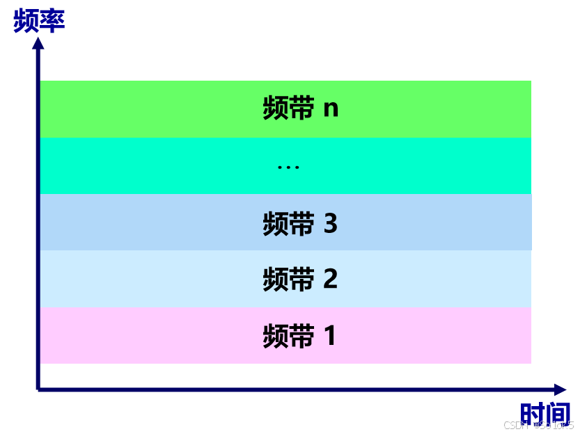 - 频分多址接入(FDMA):可让N个用户各使用一个频带,或让更多的用户轮流使用这N个频带。