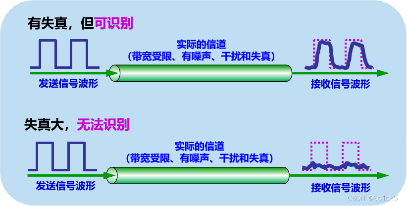 - 码间串扰:传输速率过高导致波形失真,无法识别码元。