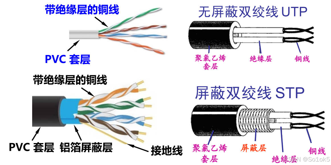 - 传输网络/介质:负责信号的传输,如双绞线、光纤、无线信道等。
