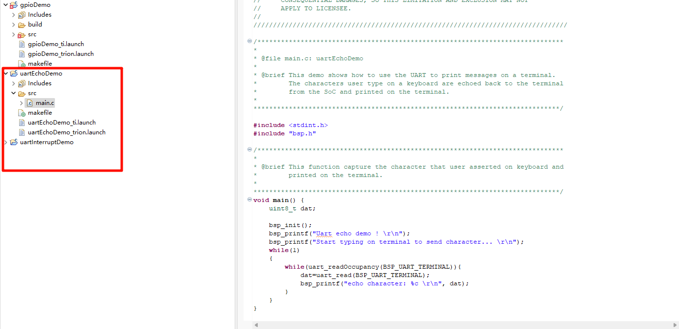 看uartEchoDemo这个模版就行,很简单。注意得接上串口的USB线。