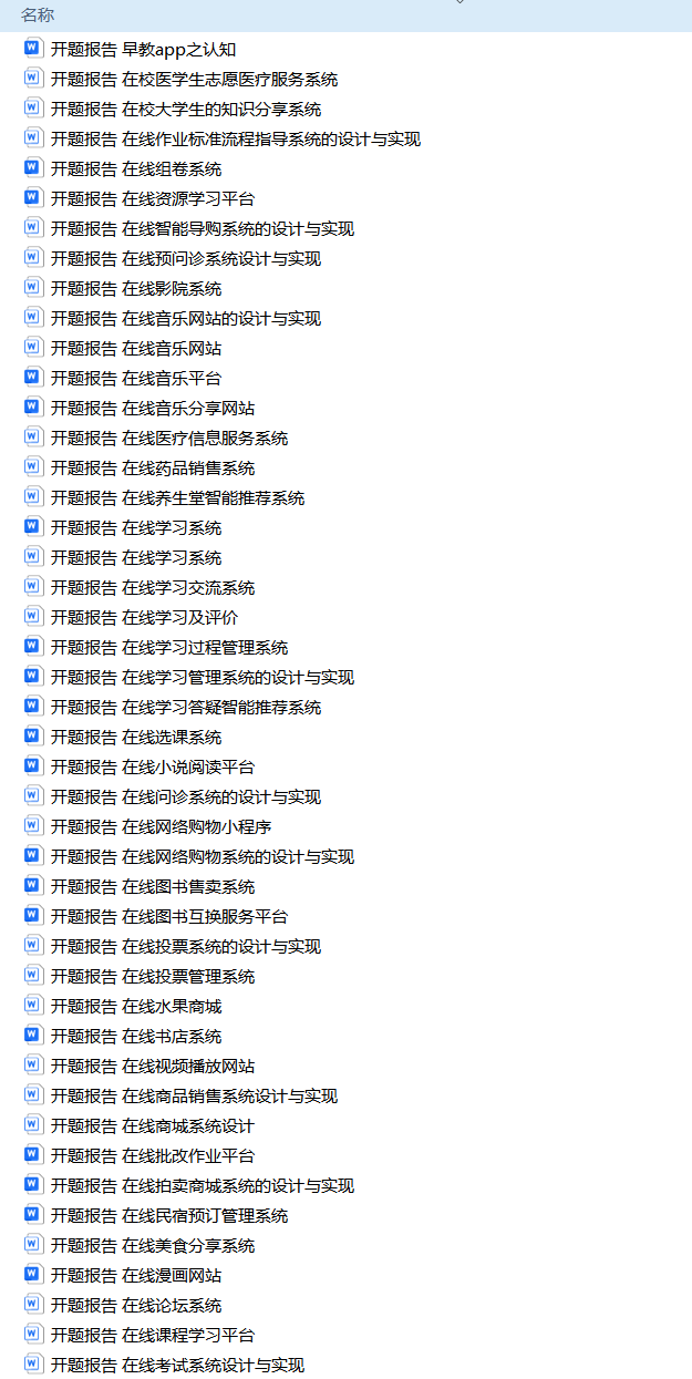 以上是H同学的毕业设计答辩过程,如果你现在还没有参加答辩,还是开题阶段,已经选好了题目不知道怎么写开题报告,可以下面找找有没有自己符合自己题目的开题报告内容,列表中的开题报告都是往届真实的开题报告可参考。