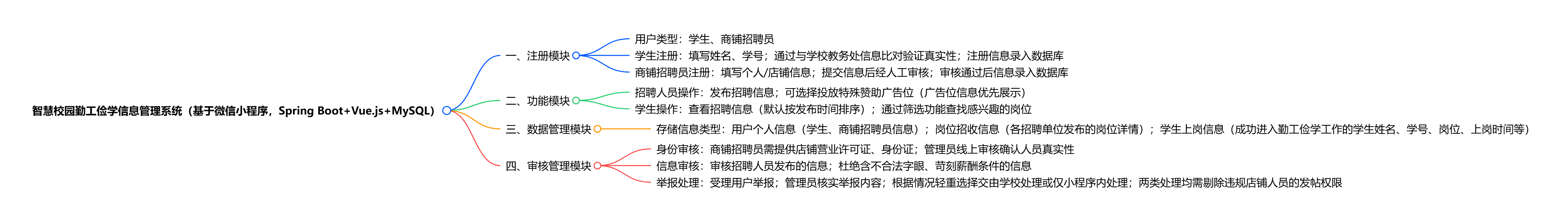 - 数据管理模块:存储三类核心信息,包括用户个人信息、岗位招收信息,以及学生已成功进入勤工俭学工作的相关信息;