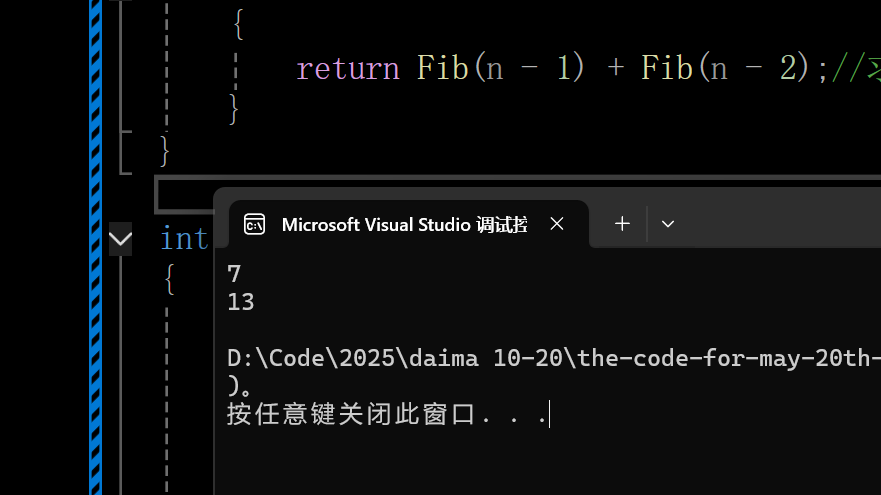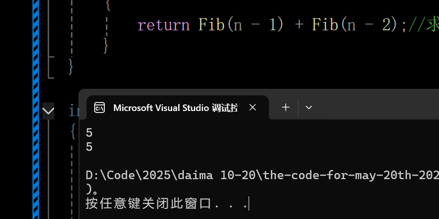 {int n = 0;scanf("%d", &n);int ret = Fib(n); //‘Fib’是斐波那契数英文的缩写printf("%d\n", ret);return 0;