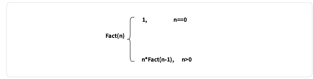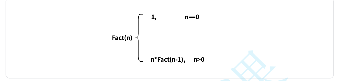 n的阶乘和n-1的阶乘是相似的问题,但是规模要少了n。有⼀种有特殊情况是:n==0的时候,n的阶乘是1 ⽽其余n的阶乘都是可以通过上⾯的公式计算