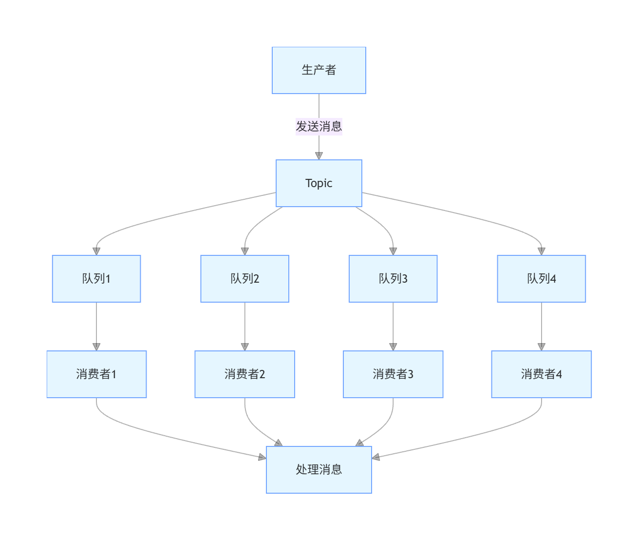 - 广播消费:同一条消息会被消费组内的所有消费者消费,适合通知类场景