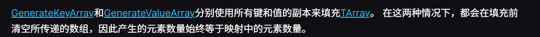 {TArray<int32> FruitKeys;TArray<FString> FruitValues;TMap<int32, FString> FruitMap;FruitMap.Add(5, TEXT("Grapefruit"));FruitMap.Add(7, TEXT("Pineapple"));FruitMap.Add(9, TEXT("Pear"));FruitMap.GenerateKeyArray(FruitKeys);FruitMap.GenerateValueArray(FruitValues);//TArray<int32> FruitKeys;//TArray<FString> FruitValues;int a = 1;