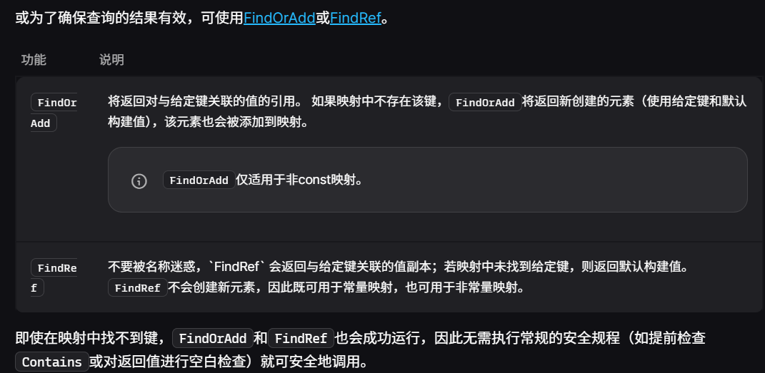 //返回的是一个值。不会创建新的元素,如果没有就构建一个临时的默认值返回,返回的是值的副本。FString Val6 = FruitMap.FindRef(6); //FString Val17 = FruitMap.FindRef(8);int a = 1;