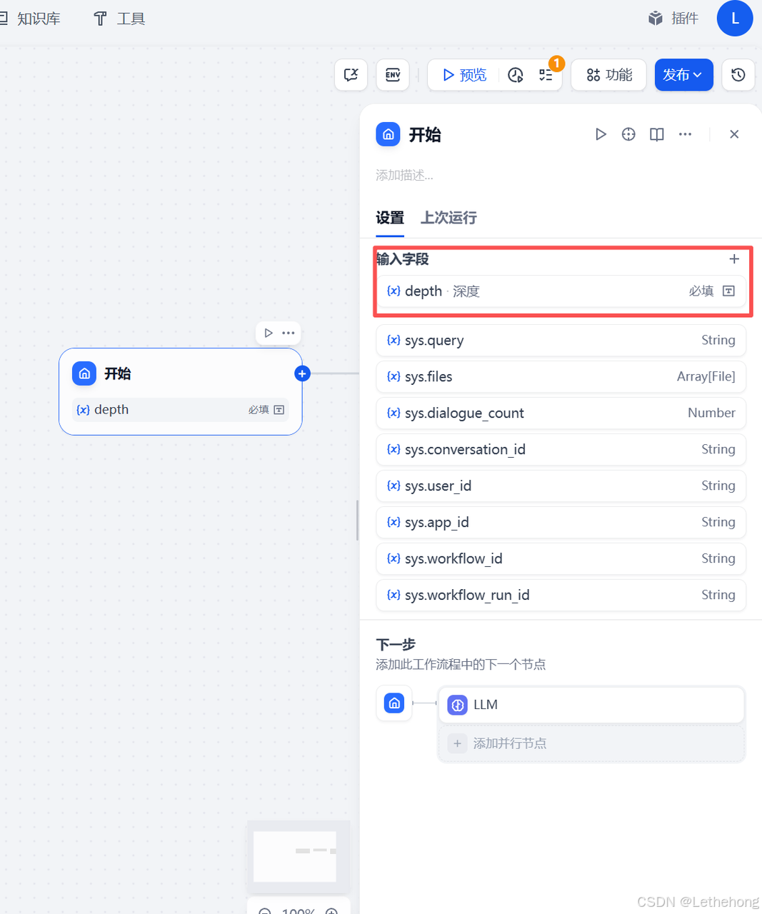 在开始节点处,设置研究深度参数,该数值决定了研究的迭代次数和详细程度。