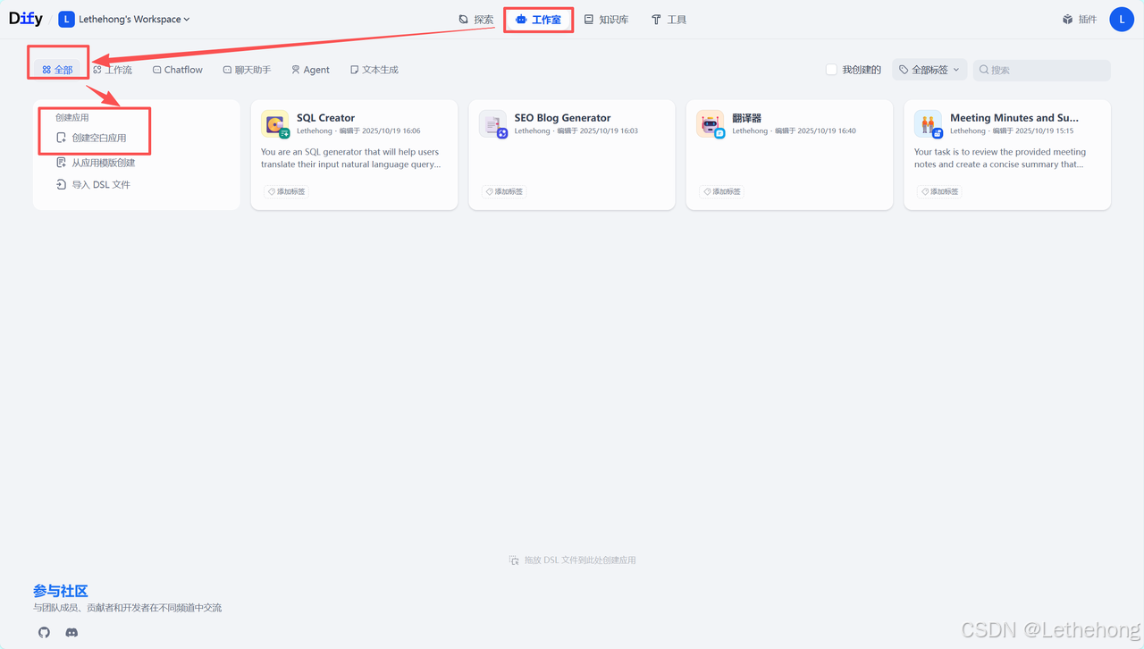 如何安装Dify请参考:https://lethehong.blog.csdn.net/article/details/151078946