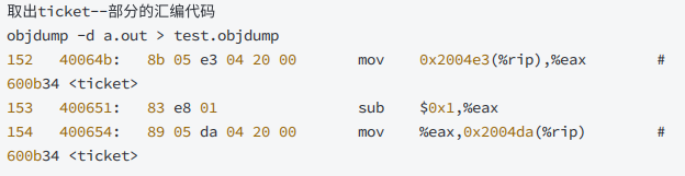 -- 操作并不是原⼦操作,⽽是对应三条汇编指令:load :将共享变量ticket从内存加载到寄存器中update : 更新寄存器⾥⾯的值,执⾏-1操作store :将新值,从寄存器写回共享变量ticket的内存地址