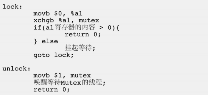 经过上⾯的例⼦,⼤家已经意识到单纯的 i++ 或者 ++i 都不是原⼦的,有可能会有数据⼀致性问题为了实现互斥锁操作,⼤多数体系结构都提供了swap或exchange指令,该指令的作⽤是把寄存器和内存单元的数据相交换,由于只有⼀条指令,保证了原⼦性,即使是多处理器平台,访问内存的 总线周期也有先后,⼀个处理器上的交换指令执⾏时另⼀个处理器的交换指令只能等待总线周期。 现在我们把lock和unlock的伪代码改⼀下