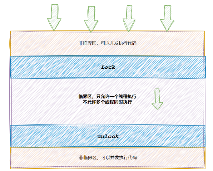 代码必须要有互斥⾏为:当代码进⼊临界区执⾏时,不允许其他线程进⼊该临界区。如果多个线程同时要求执⾏临界区的代码,并且临界区没有线程在执⾏,那么只能允许⼀个线程进⼊该临界区。如果线程不在临界区中执⾏,那么该线程不能阻⽌其他线程进⼊临界区。