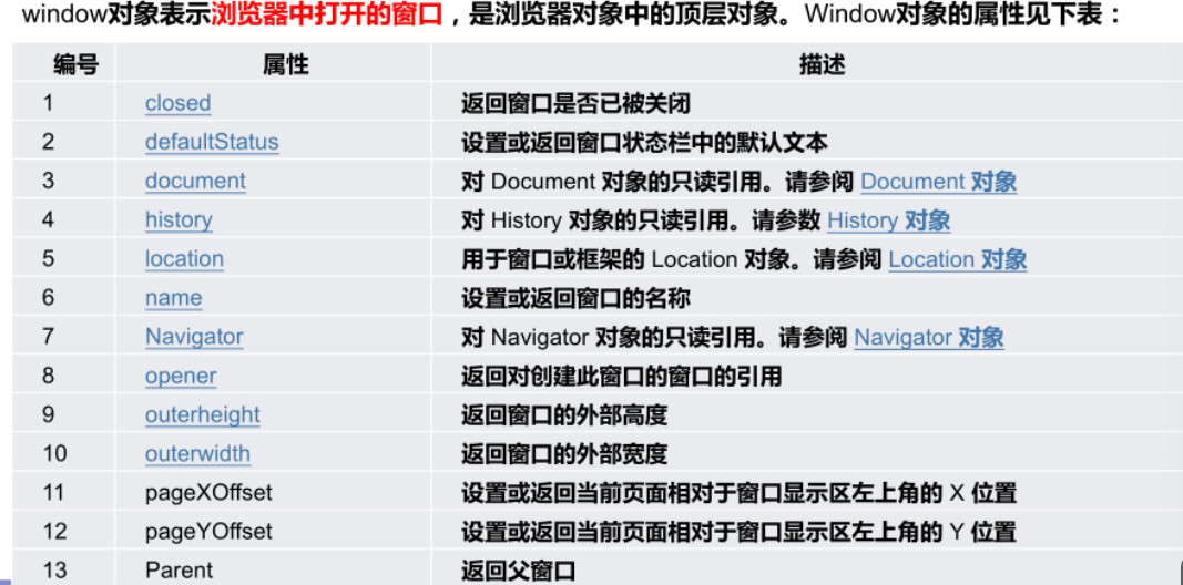 - 浏览器对象模型:描述与浏览器进行交互的方法和接口