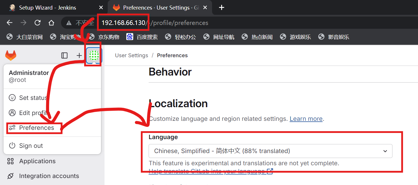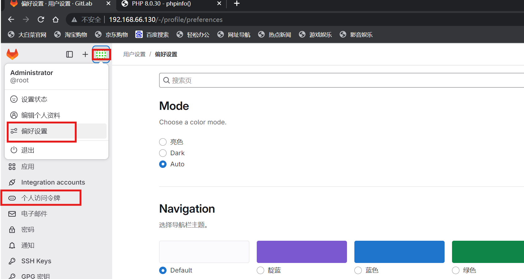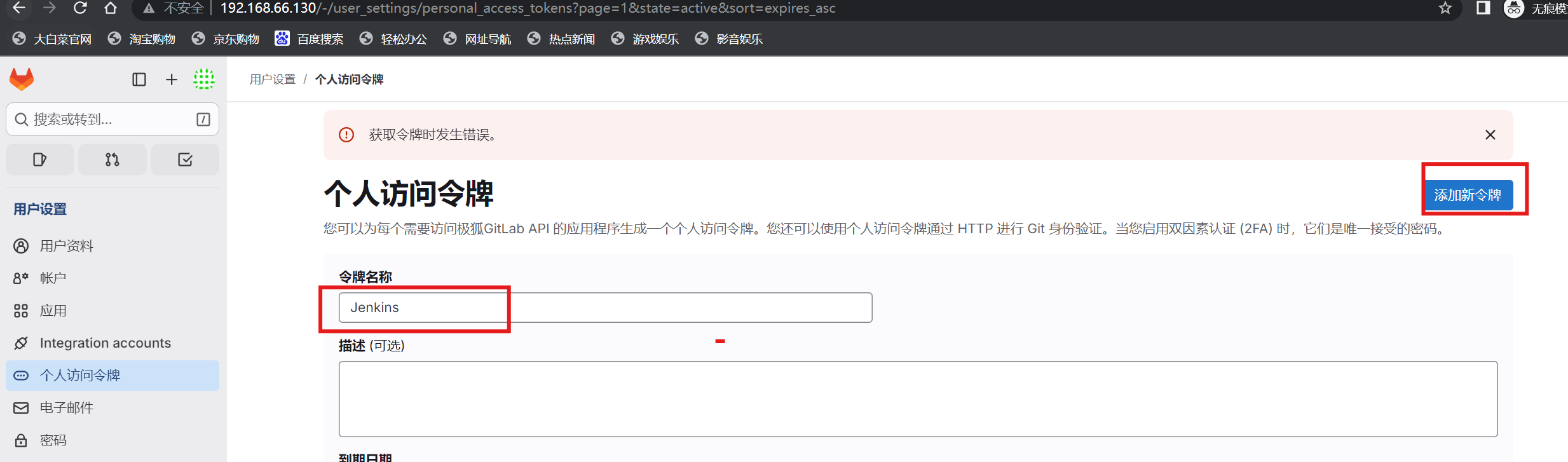 - 在gitlab上,进入“设置” -> “访问令牌”
