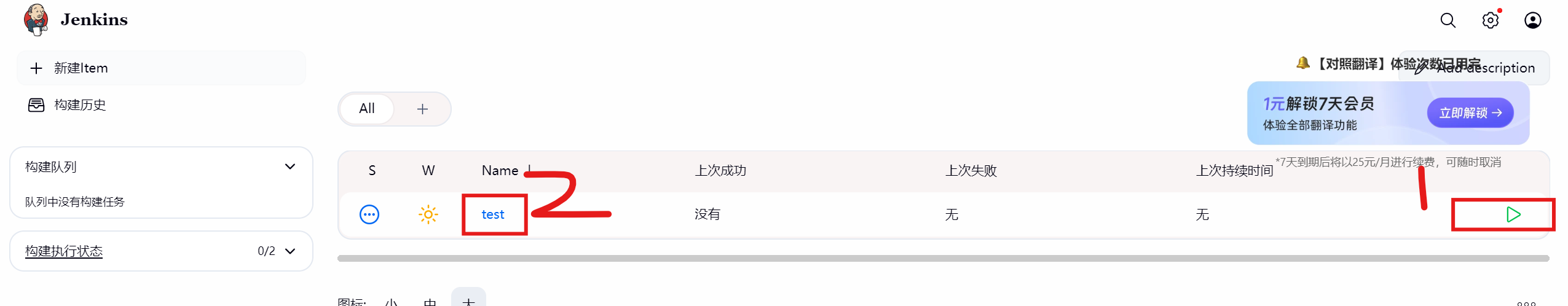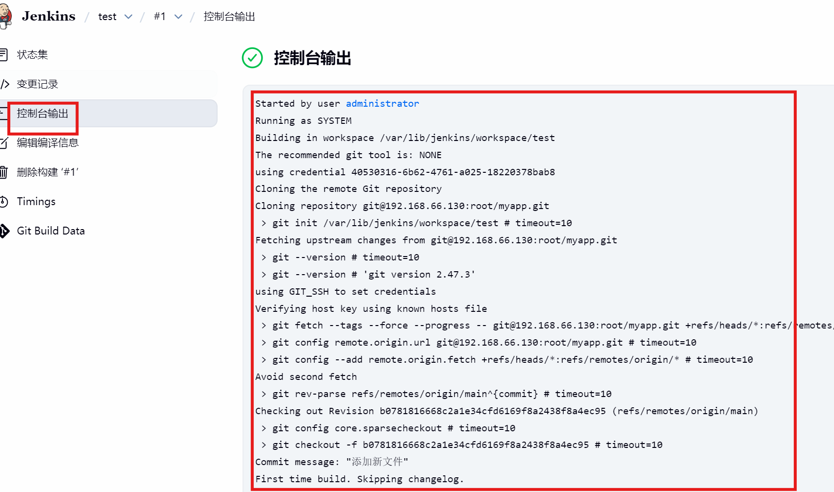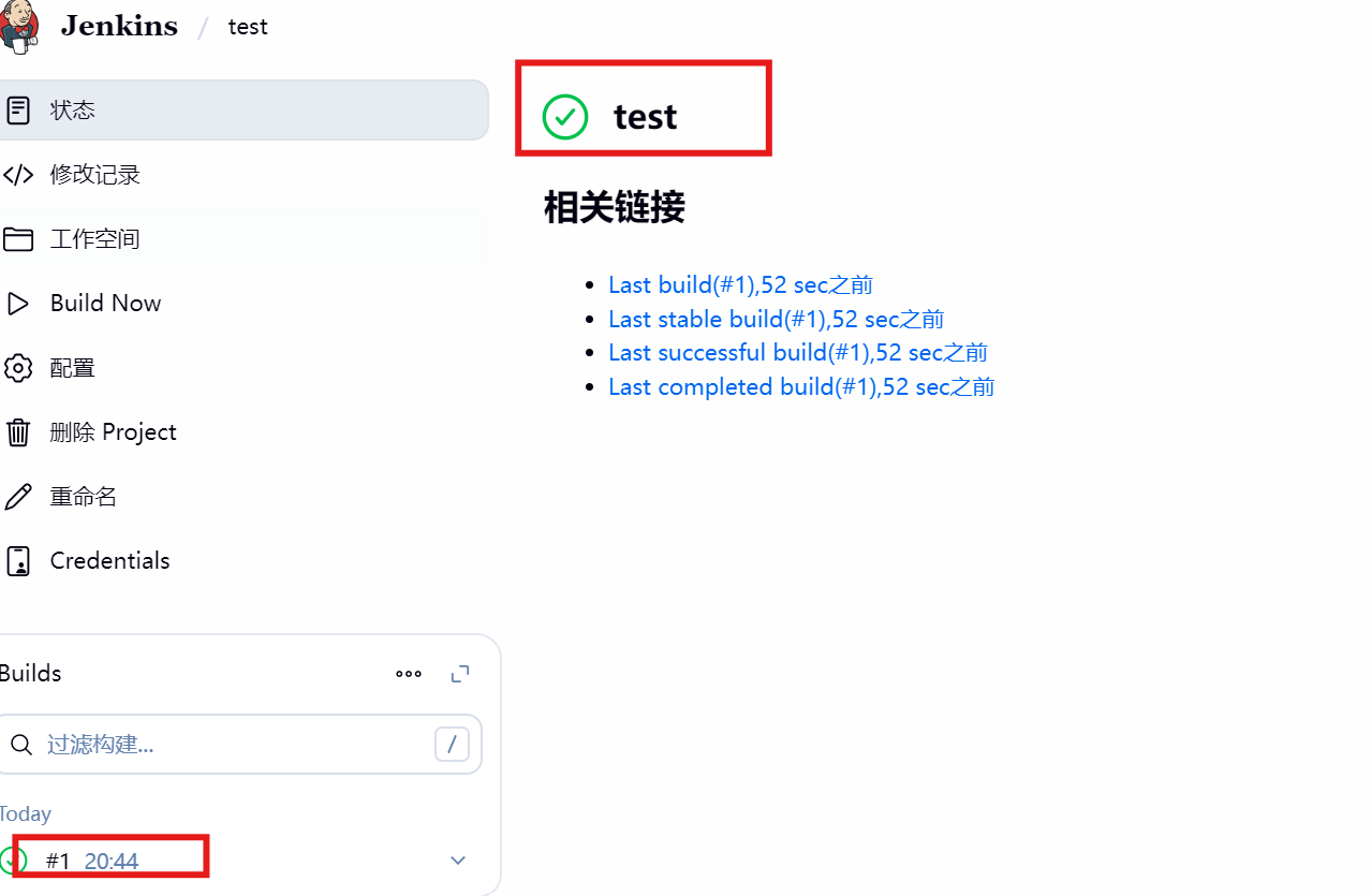 可以看到项目已经成功构建,如果想要查看更加详细的信息,可以查看左下角框住的部分,在稍后跳转的界面中选择控制台输出,查看任务执行过程