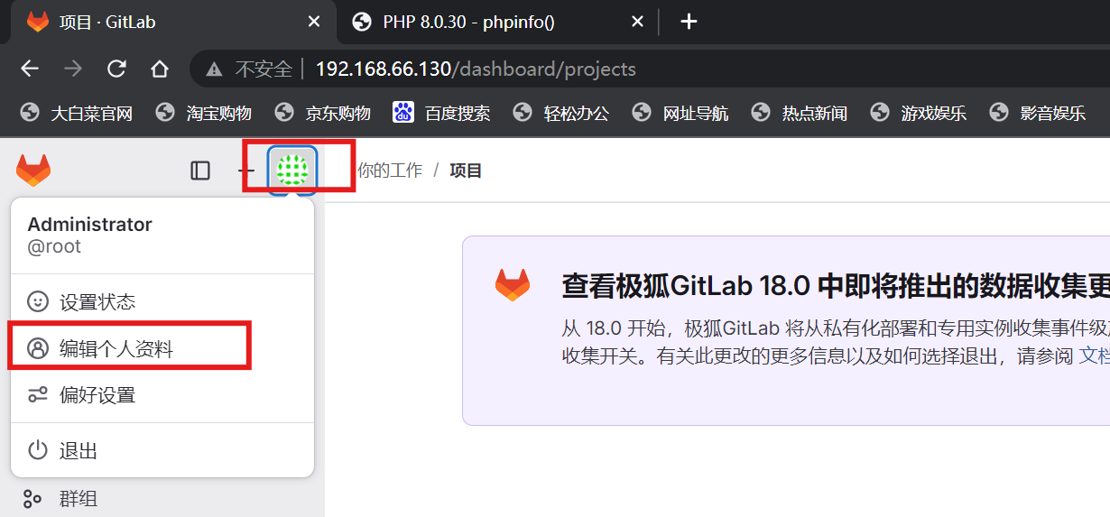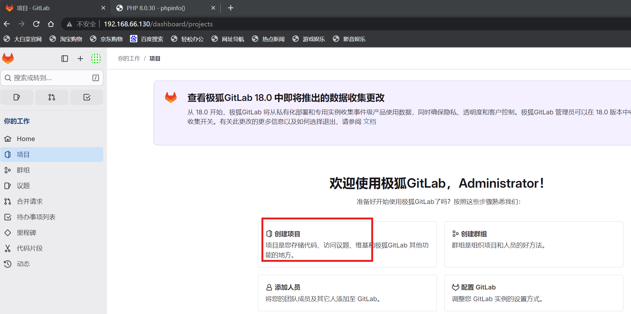 [root@localhost ~]# dnf install -y gitlab-ce(3)运行配置脚本