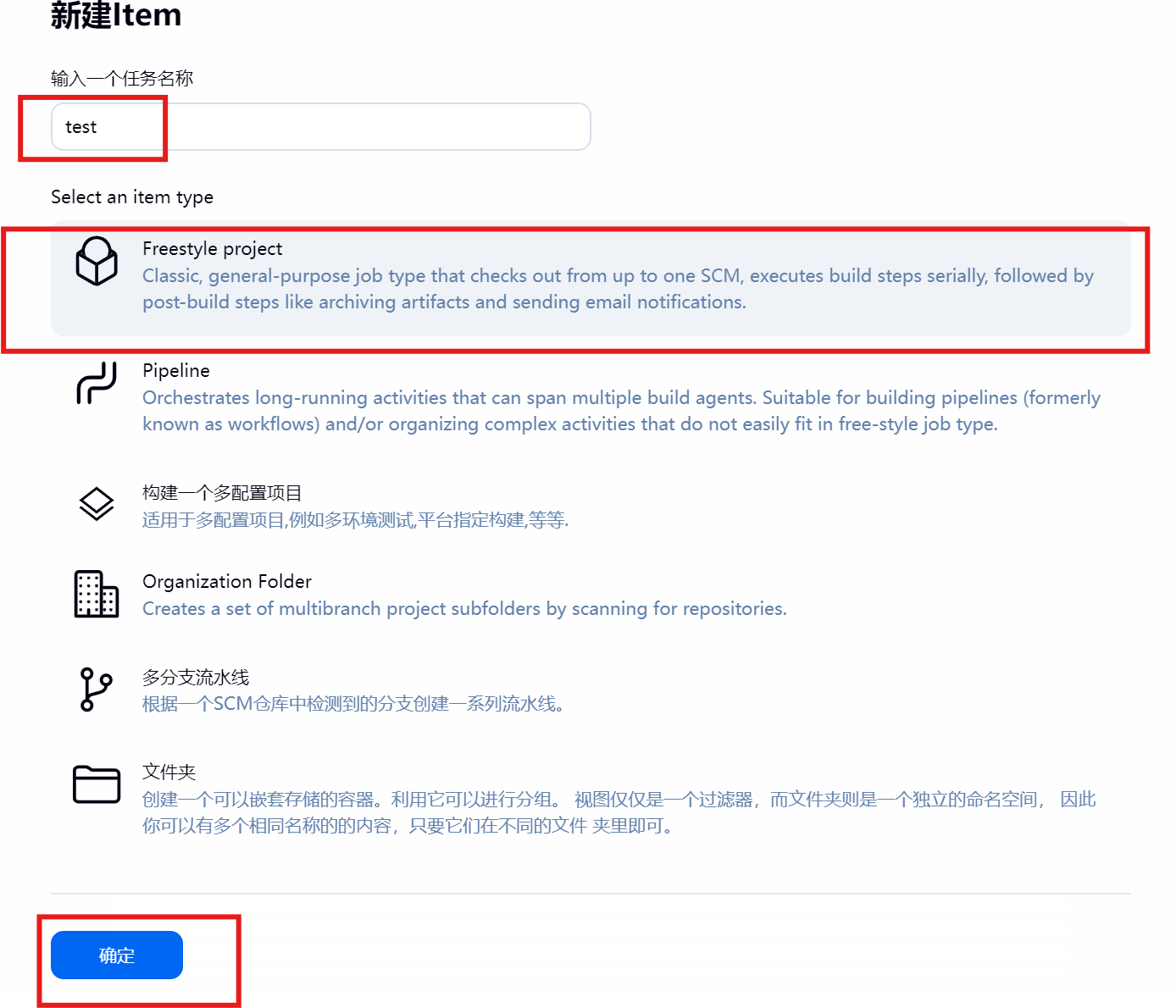 - 选择“自由风格的软件项目”,输入项目名称,例如“test”