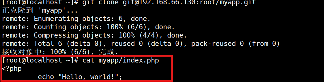 [root@localhost ~]# git clone git@192.168.66.130:root/myapp.git