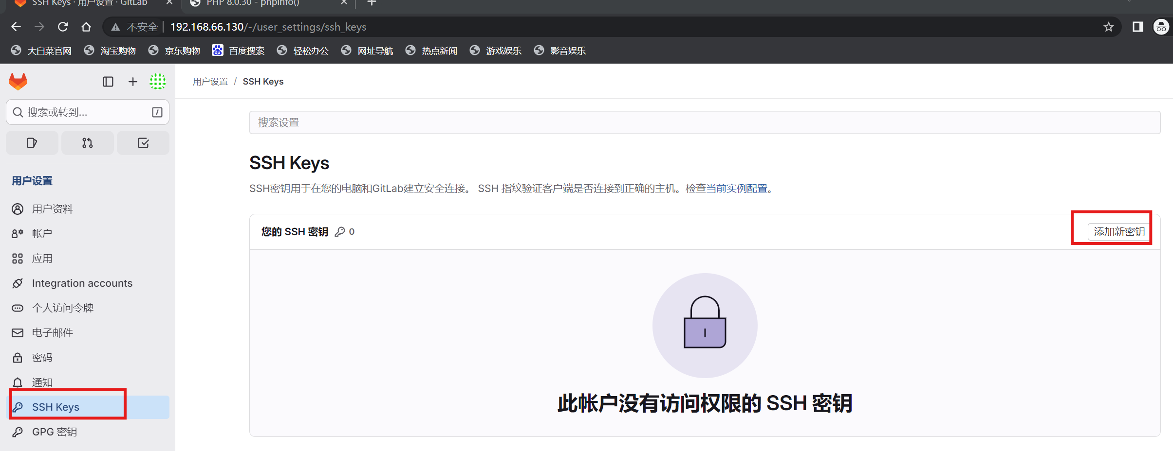 上传之后,在GitLab服务器端可以查看到上传的公钥