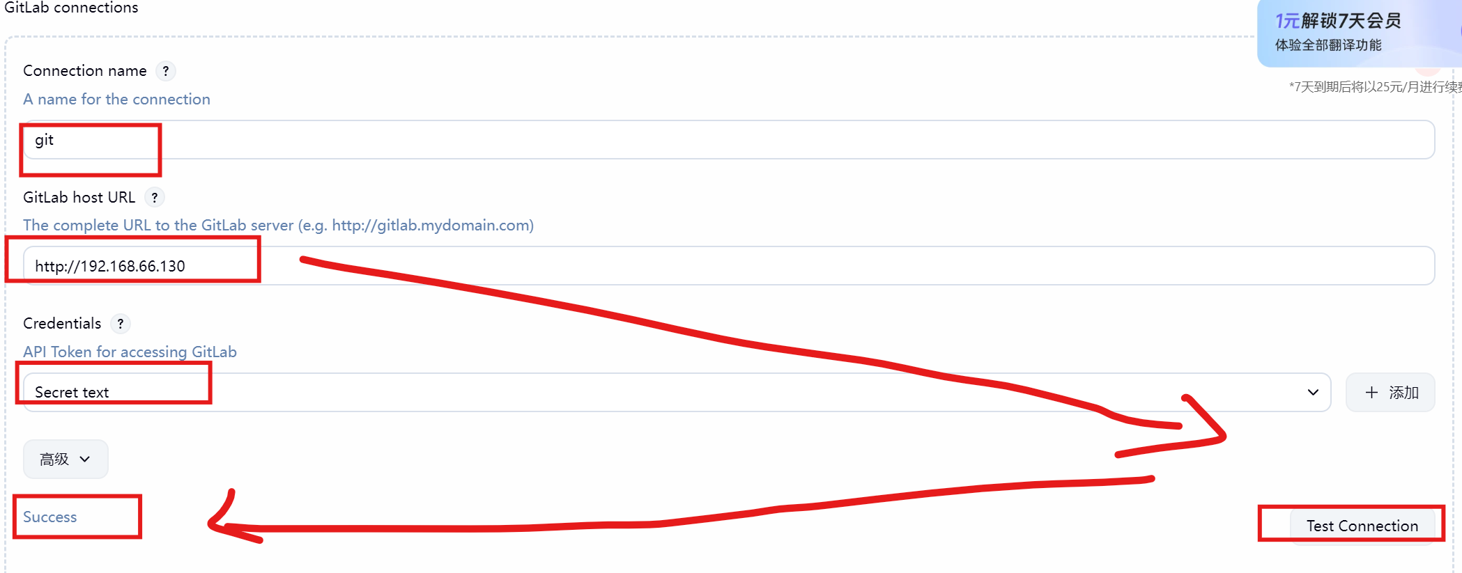 - 在jenkins上系统配置页面,找到gitlab插件的配置栏目