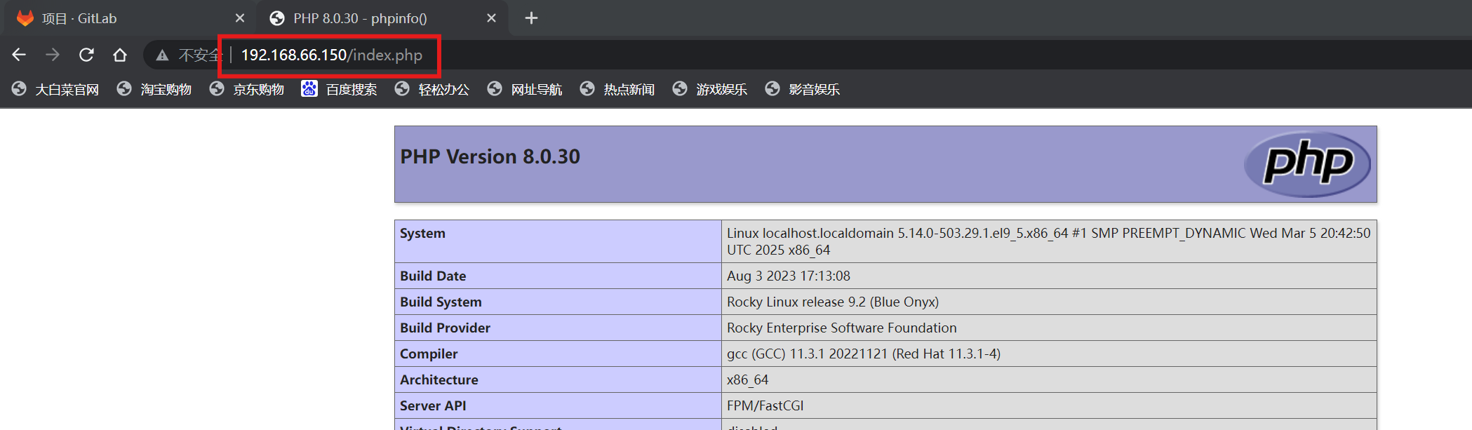 [root@localhost ~]# systemctl enable --now httpd php-fpm(3)测试php页面