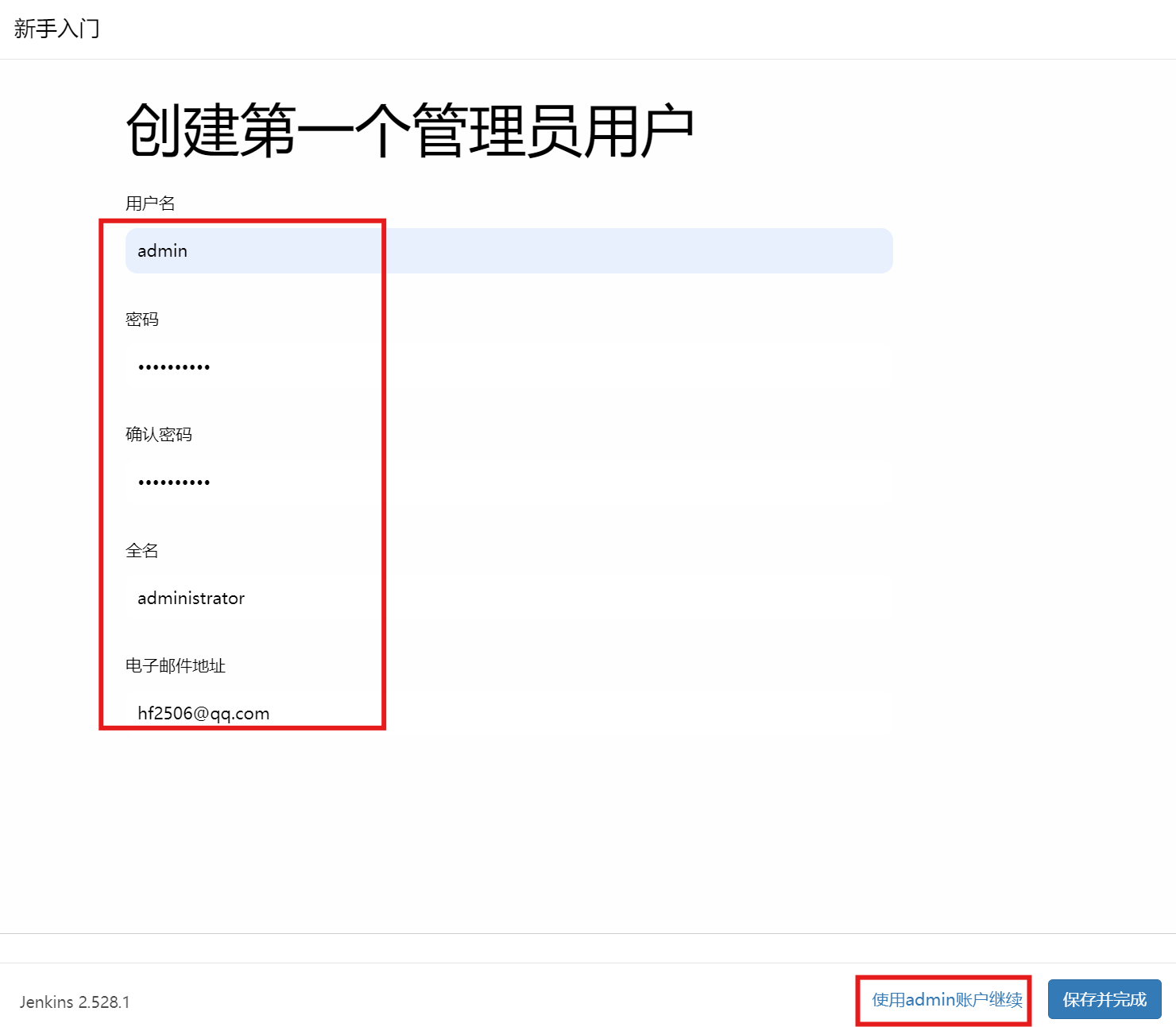 然后进入到以下界面,创建管理员用户,但不是第一个,第一个已经有了,就是admin,这个界面也可以用来给admin修改密码,我们这里也改一改admin的密码