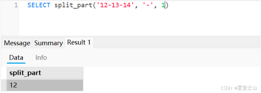 如:SELECT split_part('12-13-14', '-', 2) 返回13