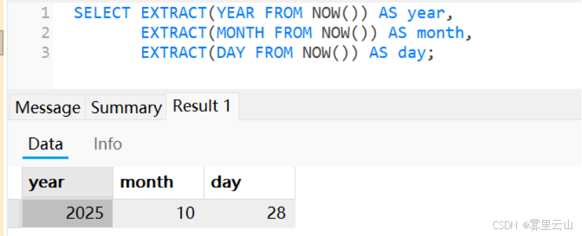 EXTRACT(DAY FROM NOW()) AS day;