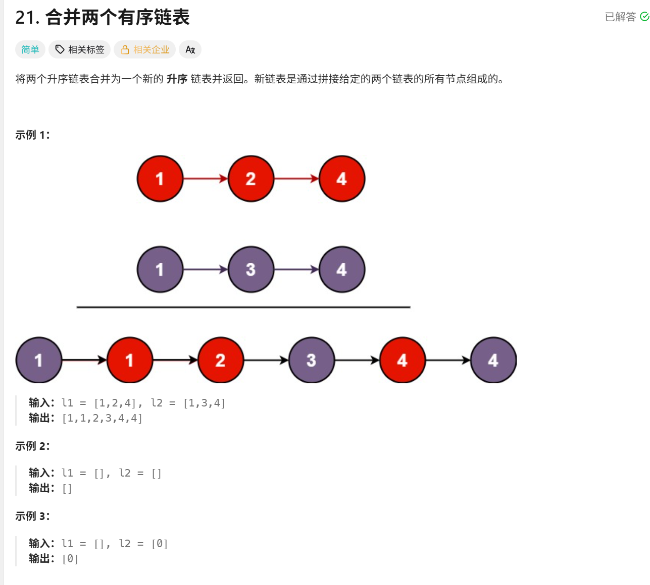 这是题目内容,如果想自己尝试,链接:https://leetcode.cn/problems/merge-two-sorted-lists