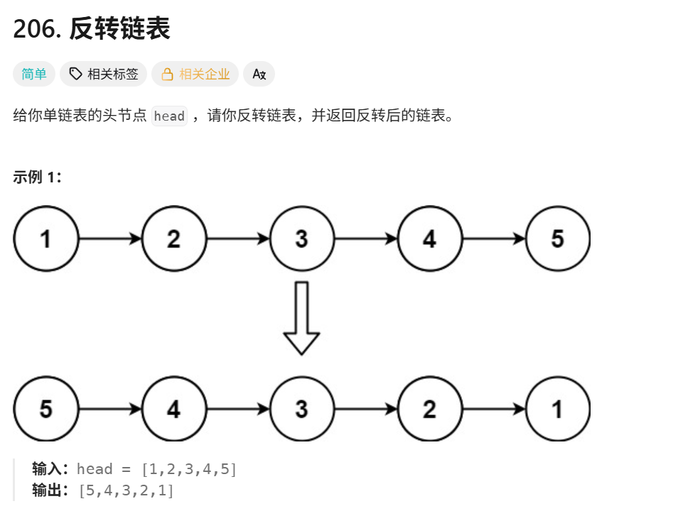 这是题目内容,如果想自己尝试,链接:https://leetcode.cn/problems/reverse-linked-list