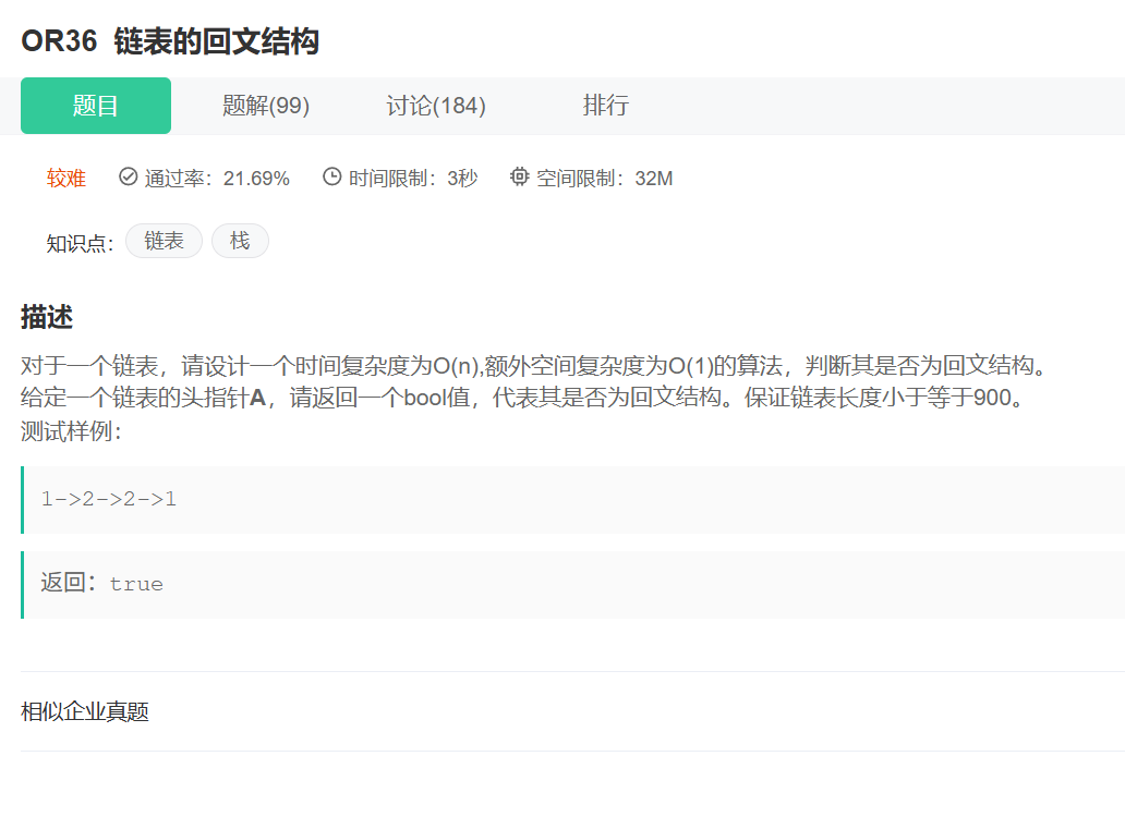 练习11:链表的回文结构