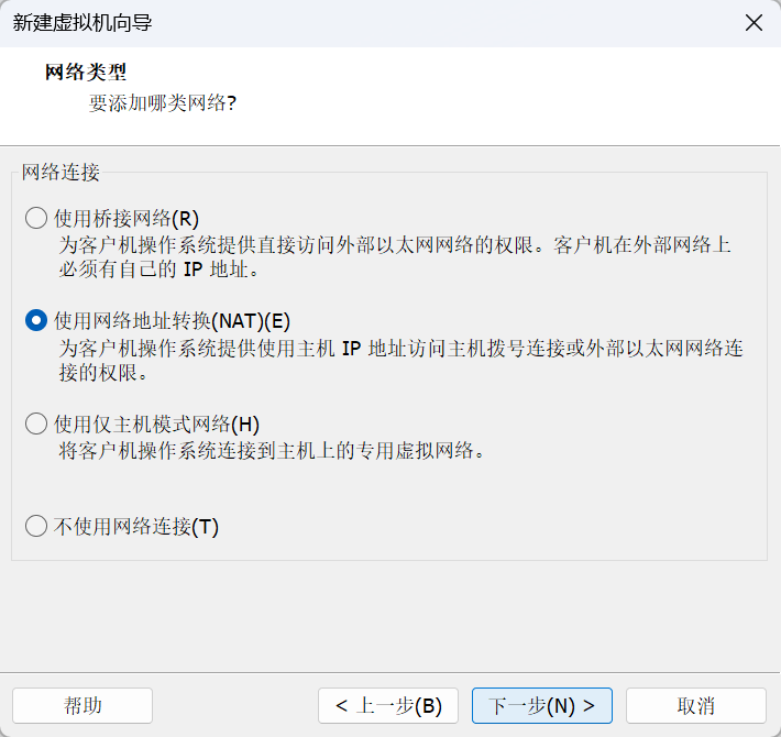 9、设置网络类型为“使用网络地址转换(NAT)”